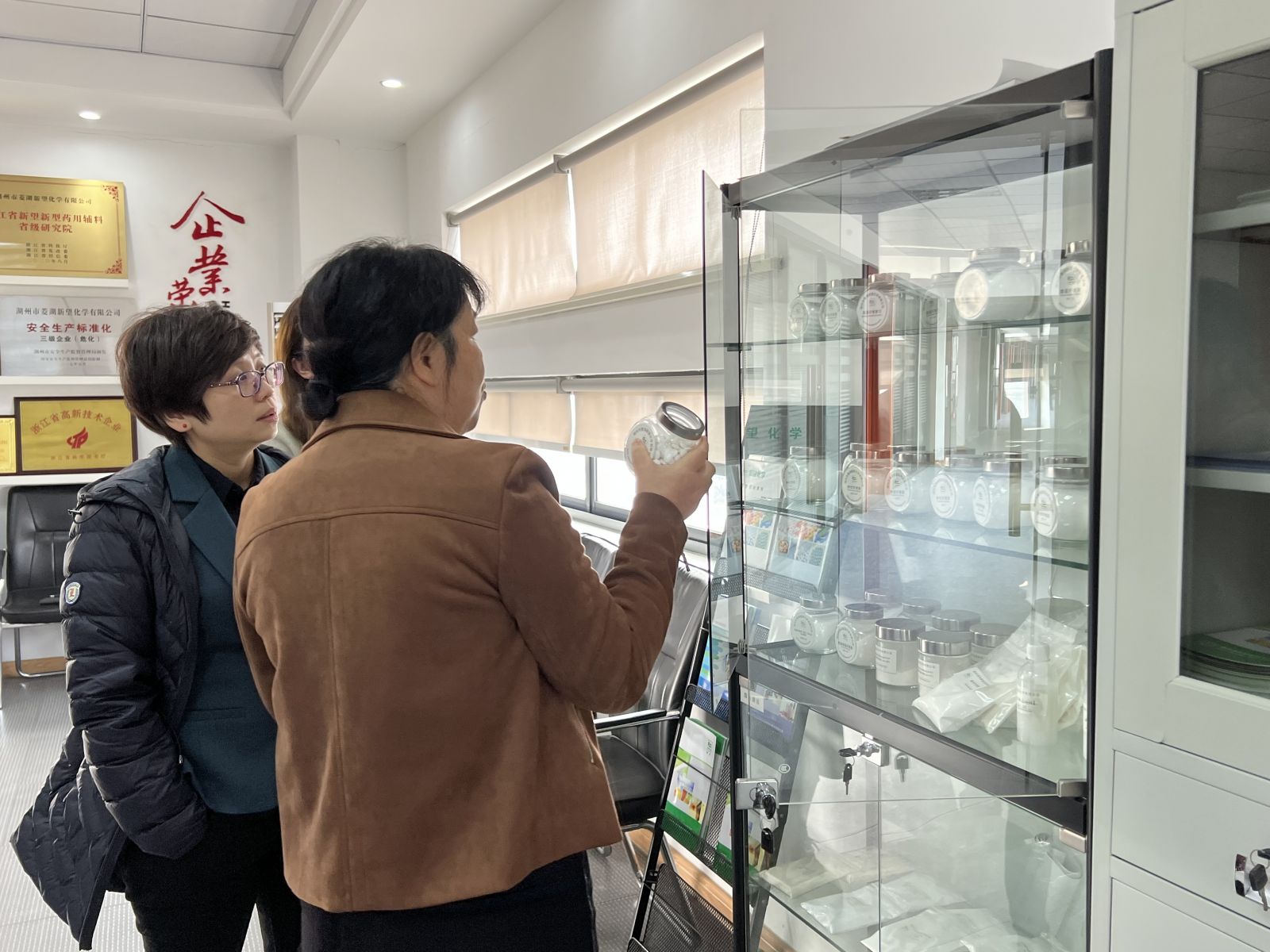 3月2日上午,南潯區科學技術局局長於麗等領導,來我司新望化學開展“三服務”下基層工作,并就南潯區人才引進優惠政策及配套設施對我司進行了宣導交流。公司總經理沈云飛、副總經理錢金娣、焦健康、沈昕洢陪同。